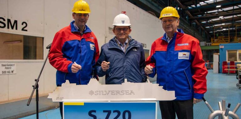 Silversea Cruises has revealed the name of its next new ship as Silver Nova. Developed as part of the ultra-luxury cruise line’s innovative new-build project encompassing twin ships, known until now as “Project Evolution”, Silver Nova commenced construction at the Meyer Werft shipyard in Papenburg, Germany quietly last month. Executives from Silversea and Meyer Werft held a traditional steel cutting ceremony on 18 November.