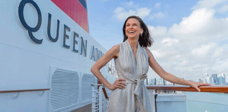 Broadway star Sutton Foster was aboard Cunard’s Queen Anne as the 2,000 guest ship made its Miami debut on Tuesday, marking its second stop in North America since its launch in May 2024.