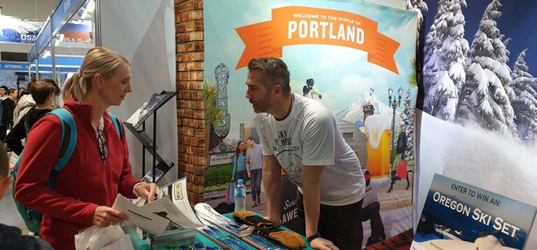 Aaron Liersemann from Oregon’s Mt Hood Territory and the Australian Travel Portland reps have been busy attending ski shows and meeting and training agents for the past two weeks getting the word out on Oregon’s two ski areas, Mt Batchelor (located near Bend in Central Oregon) and Mt Hood (just 90 minutes from downtown Portland).