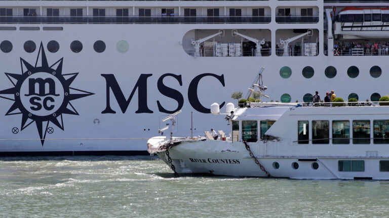 Uniworld Boutique River Cruise Collection has confirmed four passengers onboard River Countess received minor injuries when the 130-passenger ship was struck by an out-of-control MSC Cruises’ ship in Venice Sunday [2 June, 2019] morning. The 2,100-passenger MSC Opera ploughed into the Italian dock which River Countess had been moored, causing severe damage to the river boat.