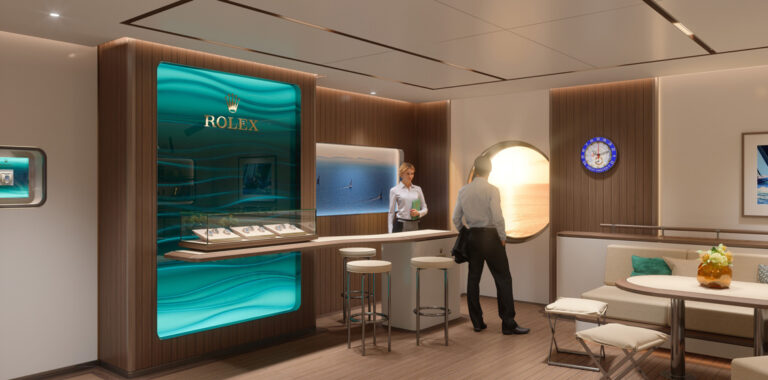 Explora Journeys will be home to the first-ever Rolex boutique on board a ship. Guests aboard EXPLORA I will have the opportunity to purchase some of the world’s most iconic timepieces by Rolex at a boutique entirely dedicated to the Swiss luxury watchmaker.