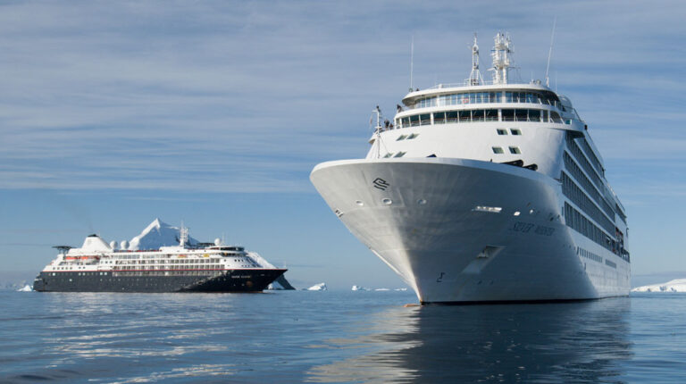Guests travelling aboard Silversea Cruise’s Silver Cloud and Silver Whisper enjoyed a rare moment in the cruise line’s history when the two ships met in Antarctica’s Wilhelmina Bay on 4 February 2020.